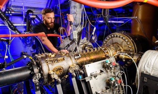 Gasturbinen für den Einsatz in Kraftwerken und zum Antrieb von Flugzeugen sollen möglichst wenig Schadstoffe emittieren. Um dieses wichtige Entwicklungsziel zu erreichen, müssen die Ingenieure die Verbrennungsvorgänge innerhalb der Brennkammer der Turbine besser verstehen. Auf einem neu entwickelten Teststand haben Forscher des Deutschen Zentrums für Luft- und Raumfahrt (DLR) und von Rolls Royce Deutschland gemeinsam eine erste Versuchsreihe durchgeführt. Das Projekt trägt den Namen Scarlet und ging Ende 2016 in Betrieb.